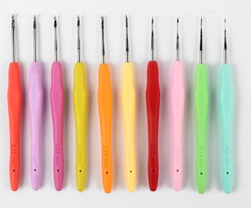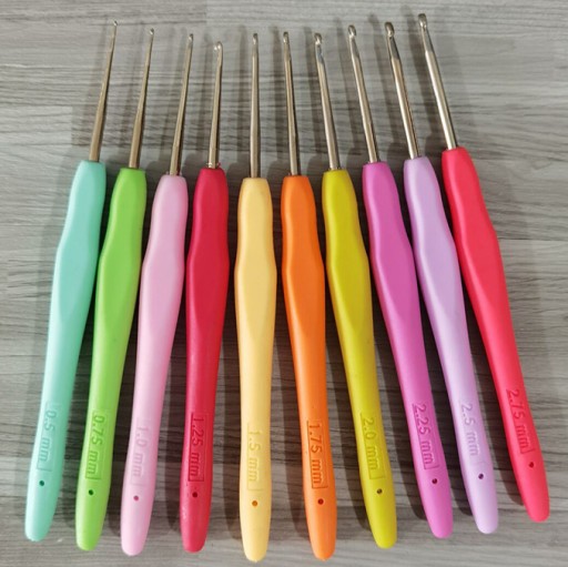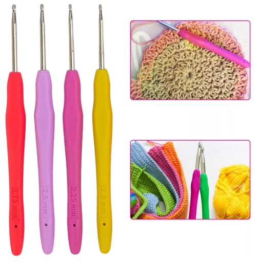 Szydełka posiadają silikonową rączkę, która dopasowuje się do dłoni, dzięki czemu praca z robótką jest dużo przyjemniejsza.