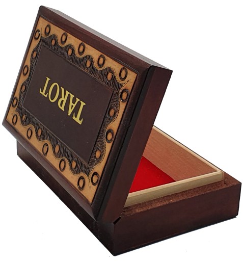 Karciarka wykonana ze sklejki liściastej wypalana, bejcowana oraz lakierowana z pięknym wzorem na wieczku.