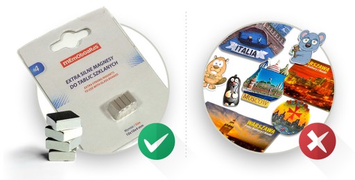 UWAGA! Popularne magnesy "wakacyjne" nie nadają się do przypinania na tablicy szklanej!