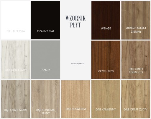 Półki (5 szt.) oraz podstawa zostały wykonane z płyty - Dąb Craft Złoty.