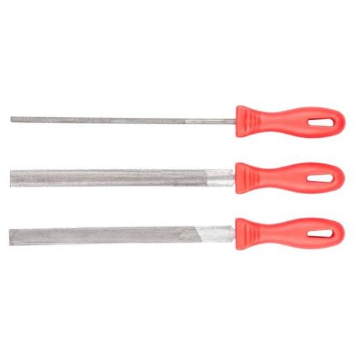 Zestaw pilników do metalu TOP TOOLS (nr ref. 06A630). Przeznaczone głównie do precyzyjnego szlifowania metalu. Trzy uniwersalne kształty pozwalają na różnorodne zastosowanie. Rękojeść z tworzywa o ergonomicznym kształcie bardzo dobrze leży w dłoni, co zapewnia wysoki komfort pracy.