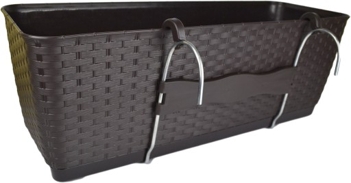 Brązowa Skrzynka Balkonowa z Wieszakiem i Podstawkiem
