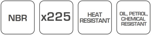 - odporność na: ozon, ropę, oleje mineralne, smary, oleje roślinne i zwierzęce, oleje opalowe, benzyny, gaz propan-butan, rozcieńczone kwasy, zasady i sole, kwaśne gazy, mieszanki glikoli;