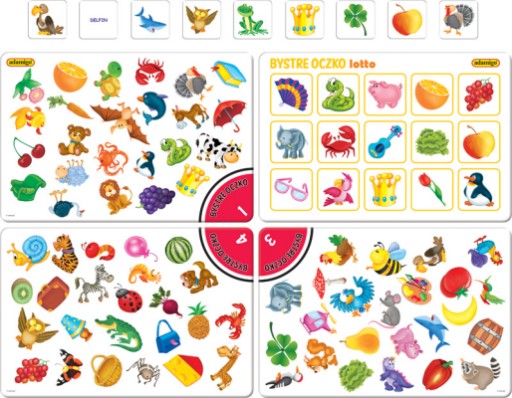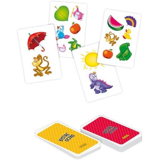 Zestaw składa się z 96 dwustronnych kartoników oraz 4 dwustronnych plansz. Zabawa polega na odnajdywaniu obrazka z kartonika na planszach. W instrukcji opisanych jest 8 gier, jednak zestaw można wykorzystywać na wiele innych sposobów. BYSTRE OCZKO® to gra polecana przez pedagogów i logopedów.