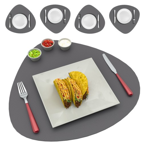 ZESTAW 4X PODKŁADKA STÓŁ TALERZ SZARA SKÓRA 40x38