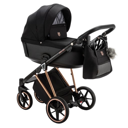 Na wyposażeniu Belissy znajduje się stylowa torba z modnym futerkowym pomponem i z pasem na ramię, w której znajdziemy: folię przeciwdeszczową, moskitierę, rękawiczki i przewijak.