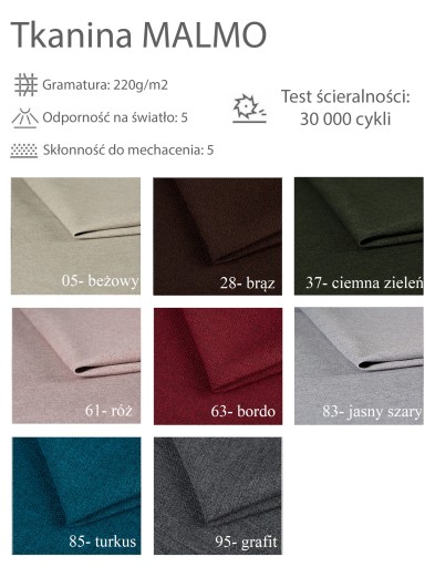 Wyświetlanie obrazu na różnych urządzeniach elektronicznych powoduje, że kolory tkanin mogą odbiegać od rzeczywistych barw. Nie jest to podstawą do reklamacji.