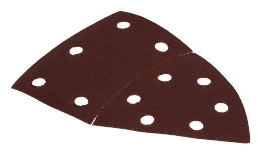 Arkusze wycięte są na kształt żelazka, posiadają możliwość oderwania jednej z części oraz dopasowanie do szlifierki ze stopą delta.
