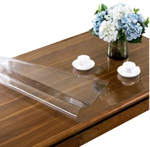 - Kolorystyka/ wzór : przezroczysty, imitacja szkła na stole
