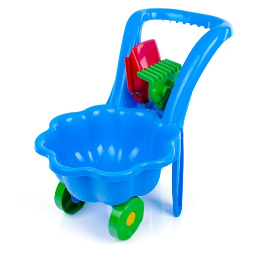 Ogrodowa taczka to świetny pomysł na zabawkę dla Naszej po pociechy! Jest to element niezbędny na wyposażeniu dla każdego ogrodnika. Idealnie sprawdzi się do przewożenia materiałów sypkich jak np. piasek, ziemia oraz większych przedmiotów. Wyprodukowano z wysokiej jakości tworzywa, który posłuży dziecku w pracach w ogrodzie. Dzieci uwielbiają naśladować zajęcia dorosłych, więc maluch będzie zachwycony, że może pomóc przy pracach w ogrodzie. To świetna zabawka również do piaskownicy. Do zestawu dołączono łopatkę oraz grabki! W konstrukcji taczki wykonane zostały otwory z przeznaczeniem na narzędzia, dlatego nic się nie pogubi ;)