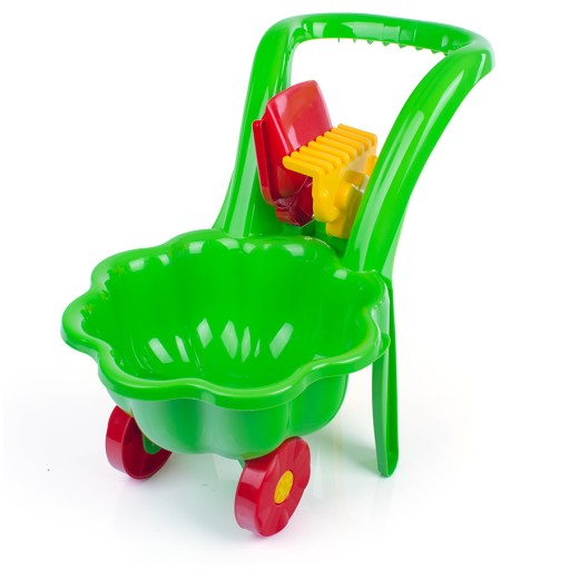 Taczka Ogrodowa STOKROTKA dla Dziecka do Zabawy + grabki i łopatka do piasku