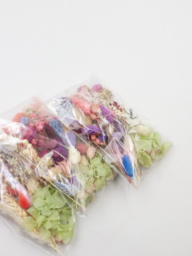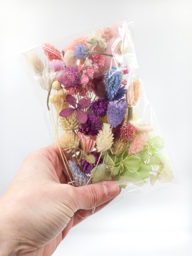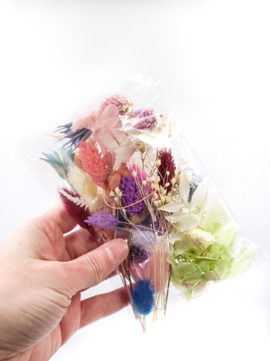 Zestawy suszonych i stabilizowanych kwiatków to idealne rozwiązanie dla osób poszukujących drobnych elementów dekoracyjnych do różnych prac artystycznych.