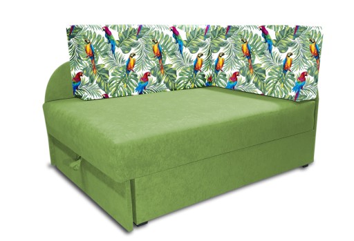 - Łóżko idealnie nadaje się do pokoju dla dziecka, ze względu na proste wykonanie oraz barwną tkaninę z której jest wykonane.