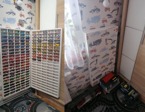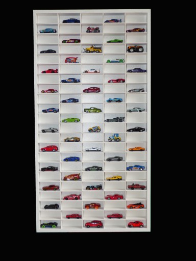 Półka na 110 autek resoraków lub inne kolekcje dziecięce naturalna ( pomalowana bezbarwnym lakierem akrylowym) lub malowana farbami akrylowymi.