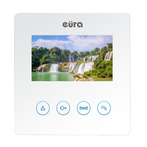 Monitor wyposażony jest w kolorowy wyświetlacz LCD o przekątnej 4,3” oraz dotykowe klawisze. Oprócz standardowych funkcji komunikacji z osobą odwiedzającą, podglądu otoczenia kamery oraz sterowania ryglem przy wejściu na posesję, monitor umożliwia sterowanie drugim wejściem na posesję. Pokrętła regulacyjne umożliwiają dostosowanie głośności rozmowy, jasności oraz nasycenia obrazu. Używając przycisku znajdującego się nad nimi użytkownik może wybrać jedną z 16 dostępnych melodii gongu.
