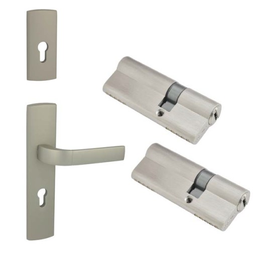 - skrzydło drzwiowe, ościeżnicę, próg, klamki, zamki, wkładki.