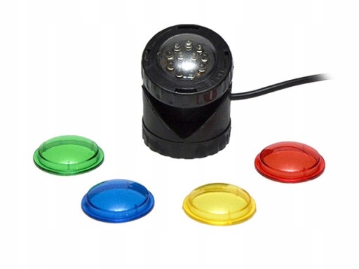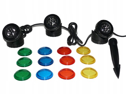 Reflektor LED do oczka wodnego - podwodne oświetlenie . Bezpieczne napięcie + czujnik zmierzchu + 5 kolorów podświetlenia + energooszczędność 3x 1,6W. W porównaniu ze zwykłymi halogenami, reflektor LED prawie nie zużywa prądu (pobór mocy tylko 3x 1.6W).