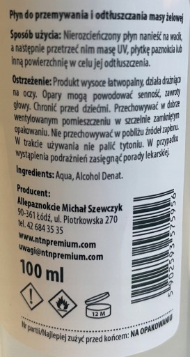 Płyn odtłuszczający stylizacje z lakierem hybrydowym, żelem lub akrylem.