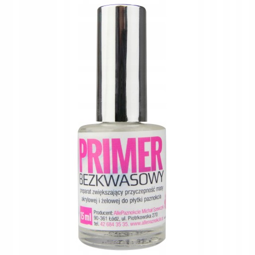 - Primer bezkwasowy AllePaznokcie to preparat zwiększający przyczepność paznokci hybrydowych, akrylowych i żelowych. Daję gwarancję idealnego przylegania masy hybrydowej, żelowej i akrylowej.