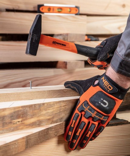 Ergonomiczna i wygodna rękojeść młotka pozwala pewnie trzymać narzędzie w ręce.