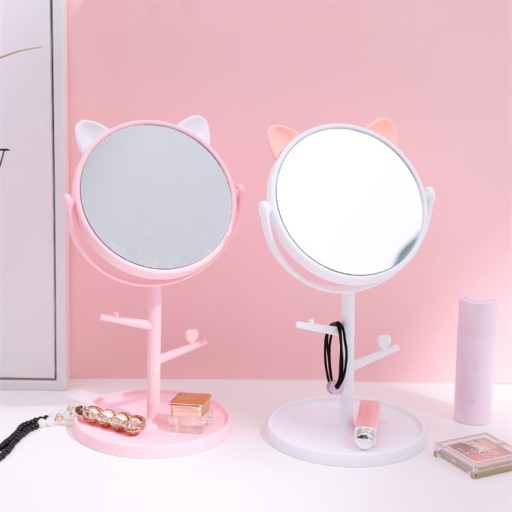 LUSTERKO KOSMETYCZNE STOJĄCE NA NÓŻCE DO MAKIJAŻU KOTEK RÓŻOWE