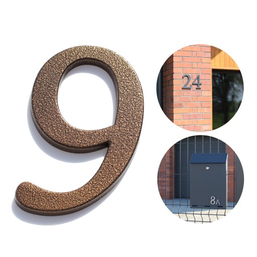 numer domu. numer na dom. cyfry na dom. tablica na dom. 3D. brąz antyk 9