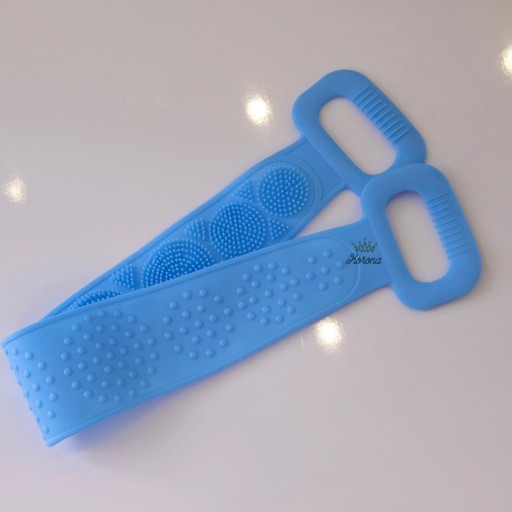 Silikonowy pas kąpielowy pomaga wygodnie i efektywnie oczyścić plecy, przyjemnie przy tym je masując. Dodatkowo, pas znakomicie sprawdzi się do peelingu skóry, przywracając jej zdrowy wygląd i miękkość.