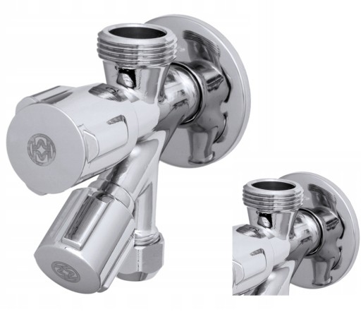 ZAWÓR KĄTOWY KOMBINOWANY 1/2x3/4x3/8 PODWÓJNY KUCHNIA ŁAZIENKA PRALKA