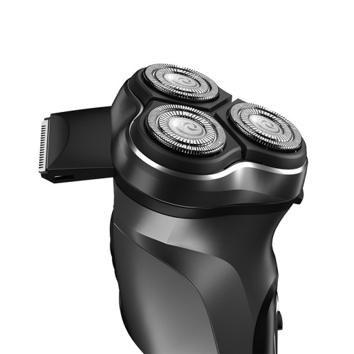 Maszynka ma trzy zestawy niezależnie pływających głowic tnących, które zapewniają o jedną trzecią więcej miejsca do golenia niż zwykła maszynka z podwójną głowicą, aby dopasować się do różnych konturów twarzy.