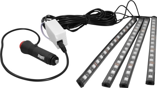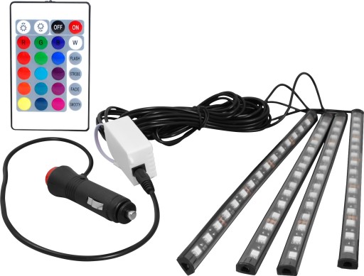 OŚWIETLENIE WNĘTRZA SAMOCHODU 4 X LISTWY LED RGB KONTROLOWANE PILOTEM