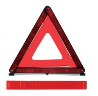 Trójkąt posiada homologację europejską. Składane trzy ramiona - długość ramienia około 43 cm. Podstawa - rozkładany stojak z czterech podpórek, bardzo szybkie składanie i rozkładnie trójkąta. Trójkąt ostrzegawczy w plastikowym pudełku - pudełko ma wymiary: 44 x 5 x 3 cm.