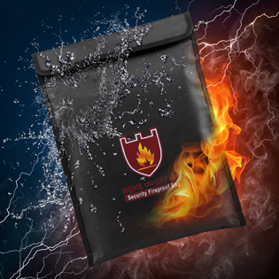 - Ognioodporna i wodoodporna – wyprodukowana z wysokiej jakości pokrytego silikonem włókna szklanego i folii aluminiowej, która wytrzymuje temperatury do 1000°C, dzięki czemu można w 100% bezpiecznie przechowywać wartościowe przedmioty.