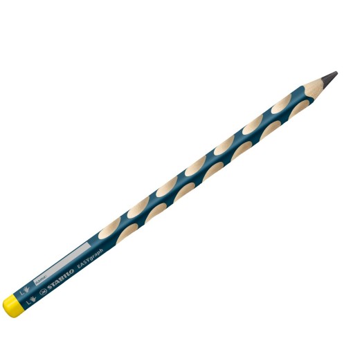 Ołówki STABILO EASYgraph dla leworęcznych. Ergonomiczne ołówki o trójkątnym przekroju zapewniają wygodny chwyt podczas rysowania. Dostępne są w 2 wersjach: dla osób prawo- lub leworęcznych. Specjalny kod kolorystyczny umożliwiający rozpoznanie wersji: żółty kolor końcówki – dla leworęcznych, czerwony dla praworęcznych. Specjalny lakier zabezpieczający przed brudzeniem strefy uchwytu. Nawet po zatemperowaniu palce znajdują wygodną pozycję do trzymania. Specjalne miejsce na wpisanie imienia.