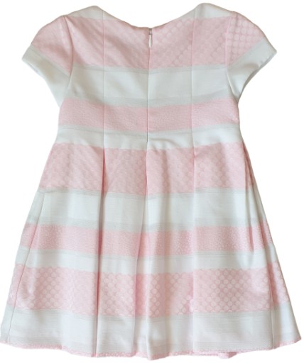 Sukienka z krótkim rękawem dla dziewczynki. Model z dekoltem okrągłym, dodatek nici srebrnej, na podszewce, zapięcie z tyłu na zamek. Wygodna elegancka i lekka sukienka.