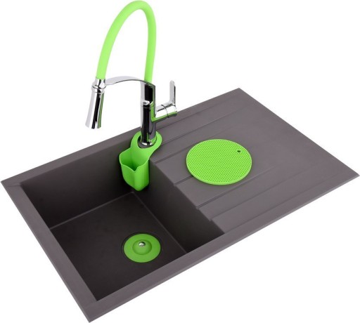 Silikonowe dodatki marki Fala to praktyczne i pomysłowe rozwiązania do kuchni.Idealnie komponują się ze zlewozmywakiem wyposażonym w baterię Fala z serii Flexible.Organizer na gąbkę do mycia naczyń sprawia, że jest ona zawsze pod ręką