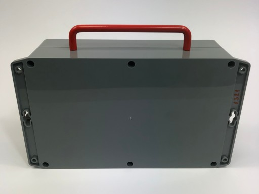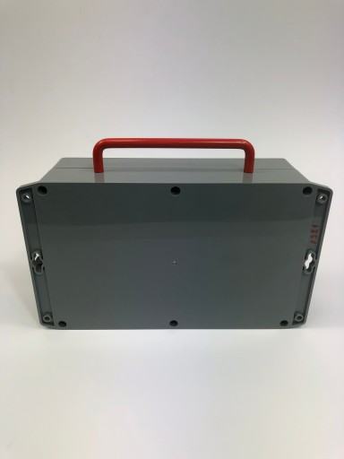Czerwony uchwyt ułatwiający przenoszenie.