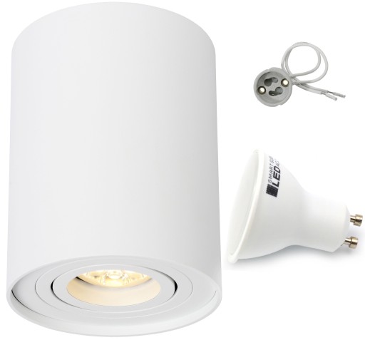 Oprawa sufitowa natynkowa SPOT GU10 biała matowa w komplecie z gniazdem GU10 oraz żarówką GU10 9W w dwóch barwach światła do wyboru.