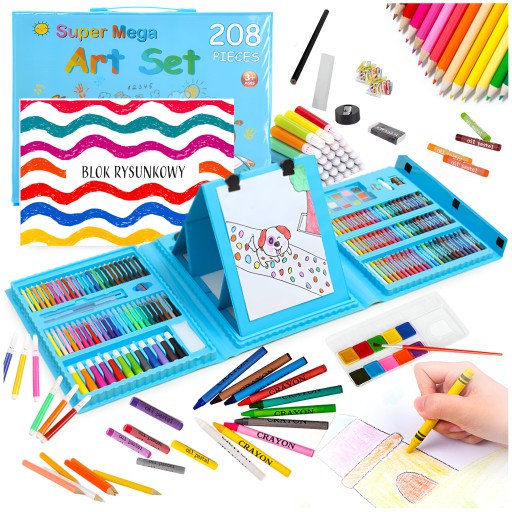 🎨ZESTAW ARTYSTYCZNY DO MALOWANIA RYSOWANIA 208 ELEMENTÓW + BLOK RYSUNKOWY A4 20 KARTEK