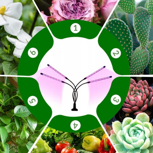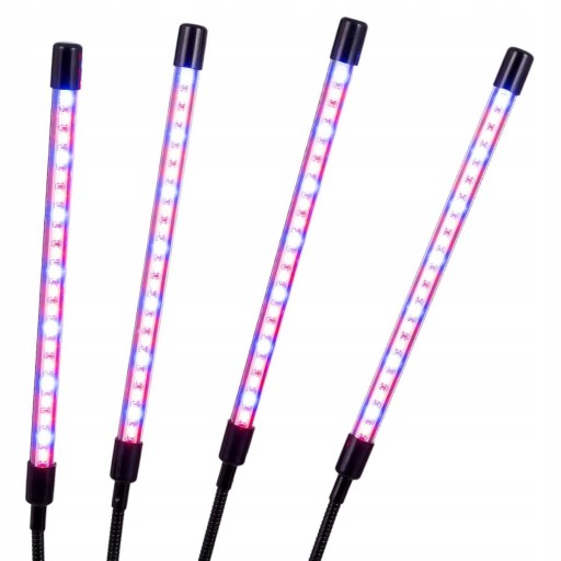 Lampa LED do roślin z czterema głowicami pozwala dostosować siłę światła i wybrać jeden z 9 trybów, które mogą dawać moc od 20 do 100%. Warto również zwrócić uwagę na wysokość położenia głowicy z ledami nad rośliną, aby nie doszło do jej spalenia.