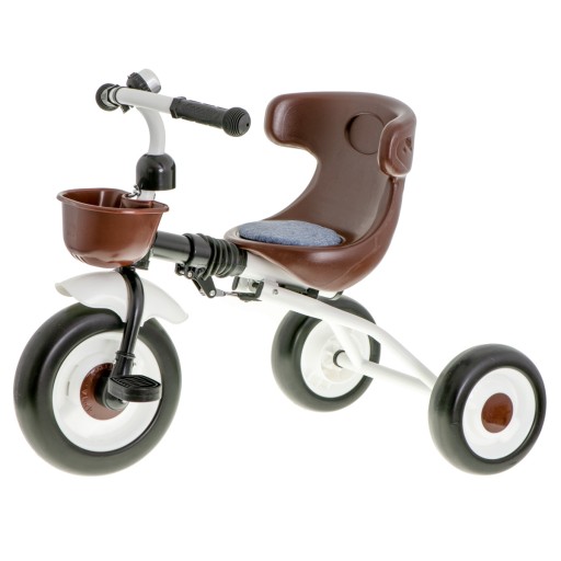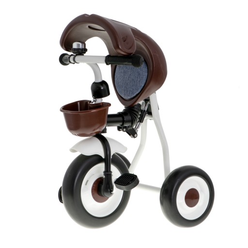 SKŁADANY DZIECIĘCY ROWEREK TRÓJKOŁOWY Z OPARCIEM I KOSZYKIEM - KOLOR BRĄZOWY