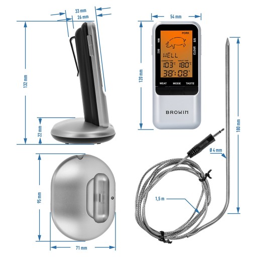Termometr posiada fabrycznie zaprogramowane funkcje mierzenia różnych rodzajów mięsa oraz typów przygotowywanych potraw.