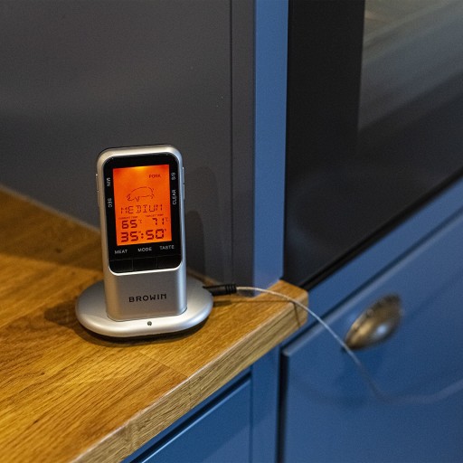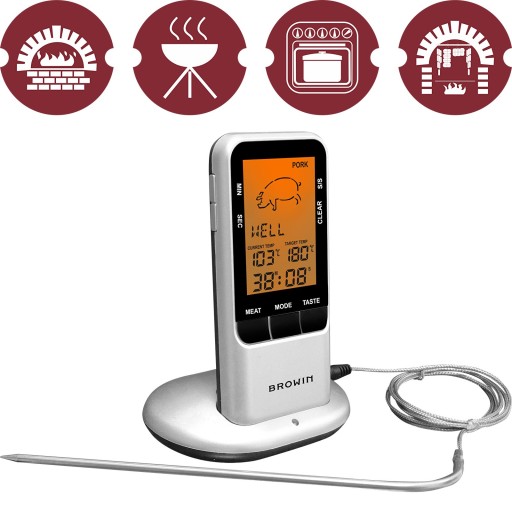 Termometr posiada fabrycznie zaprogramowane funkcje mierzenia różnych rodzajów mięsa oraz typów przygotowywanych potraw.
