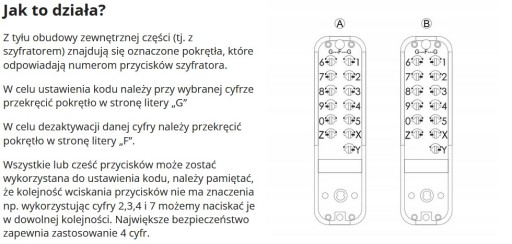 - Kod wprowadzany mechanicznie (nie wymaga żadnego zasilania)