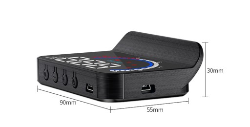 Wyświetlacz może pracować na złączu OBD2 lub korzystając z wbudowanego modułu GPS - wtedy wystarczy zasilić urządzenie z portu USB.