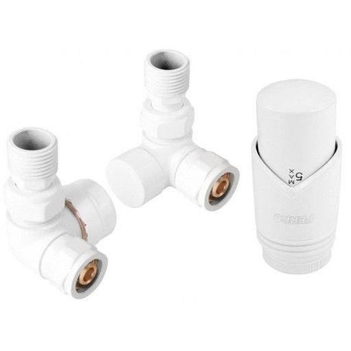 Dekoracyjny zestaw termostatyczny uniwersalny biały; głowica termostatyczna może być montowana z prawej lub lewej strony.