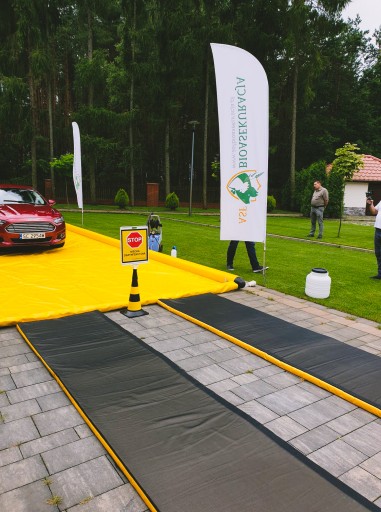 Ustalając wymiary maty należy wziąć pod uwagę rozmiar największego koła w pojeździe, którego obwód musi w całości przetoczyć się przez matę dezynfekującą.