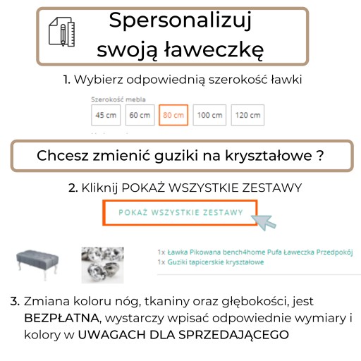 4. Jeżeli chcesz aby guziki w Twojej ławeczce były kryształowe dodaj guziki do zestawu przy zakupie