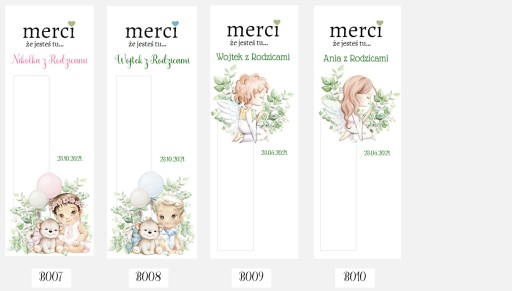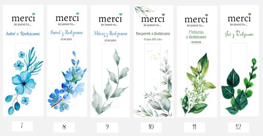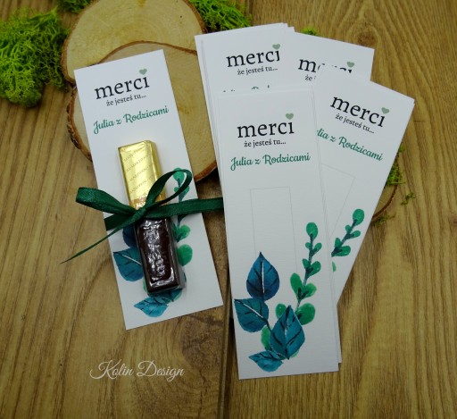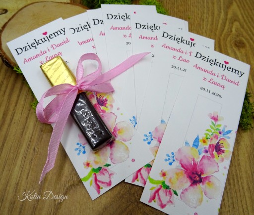 Podziękowania, kartoniki personalizowane na czekoladkę Merci lub Kinder (w zestawie brak czekoladki)