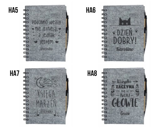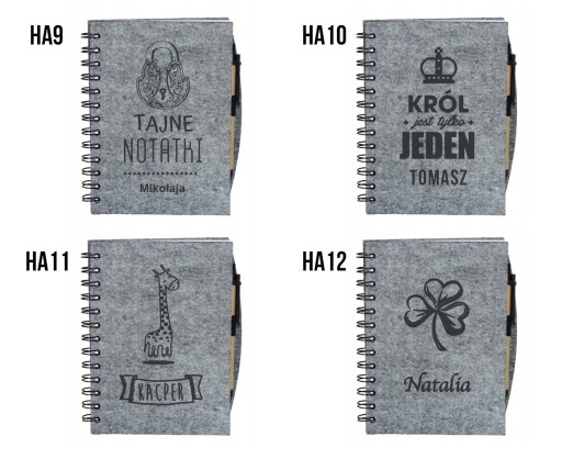 Po zakupie prosimy o wiadomość z wybranym wzorem oraz tekstem który ma się znaleźć na notesie.