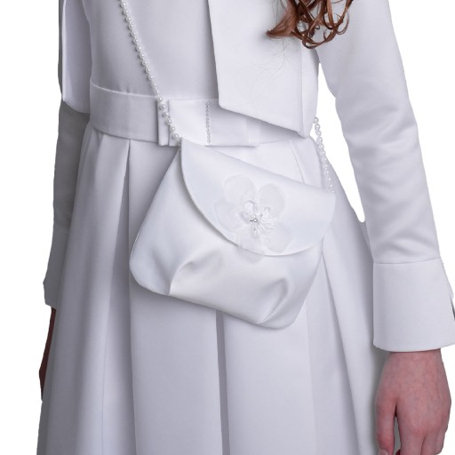Elegancka torebka komunijna w kolorze bieli. Uszyta ręcznie w naszej pracowni, specjalnie na uroczystość I Komunii Św.